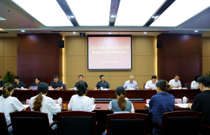 为推进校院合作项目走深走实,探索共育法治人才培养模式。7月14日上午,经济法(知识产权)学院与宝山法院暑期实习项目开班动员会在上海举行。校党委委员、副校长王健,宝山法院党组书记、院长张晓立出席动员会并讲话。法院其他班子成员、业务庭负责人、带教法官代表,经济法(知识产权)学院院长倪楠、教师以及实习生代表参加。动员会由宝山法院政治部主任吴隽主持。