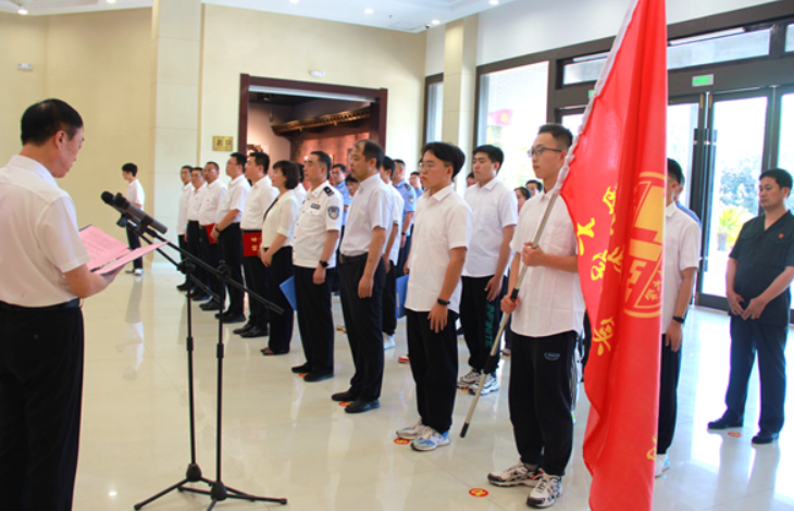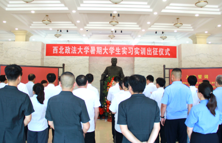 7月25日下午,经济法(知识产权)学院暑期大学生实习实训出征仪式在侯马市彭真故居举行。侯马市委常委、统战部长、政法委书记郭丽华,市委常委、组织部长、党校校长田伟,市政府副市长、市公安局党委书记、局长张春生,市委组织部、市委政法委、公安局、司法局、教科局等相关单位负责同志,经济法(知识产权)学院院长倪楠,教授肖新喜,团总支书记李冬冬以及实习生共计40余人参加。
