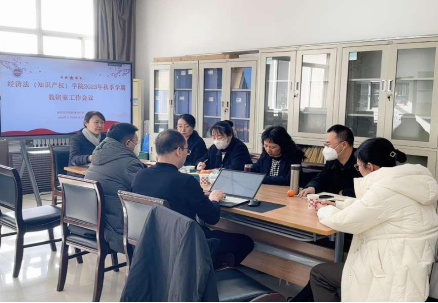 2023年秋季学期教研室工作会议在学院教务办公室召开,学院党委书记李建梅、各教研室主任、教务秘书参会,会议由学院副院长薛亮主持。会议首先共同研讨了《经济法(知识产权)学院推进课程思政工作机制(意见稿)》,参会人员对意见稿进行了讨论,李建梅书记就集体备课、教学比赛、课程思政资料补充等内容提出了指导性意见建议。