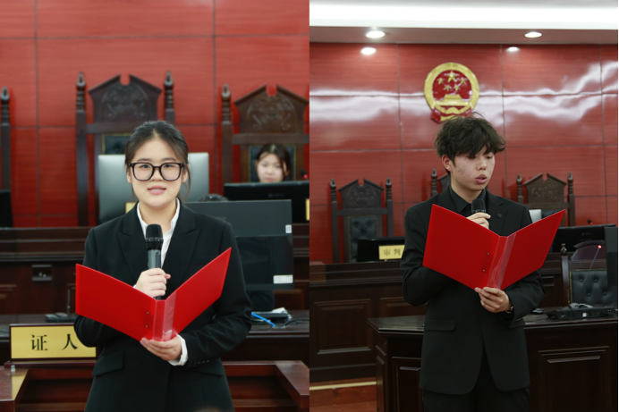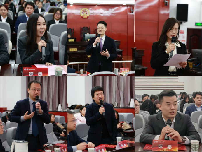 随后,学院团委书记王文老师宣读了获奖名单,各位评委老师为在法条拼贴诗和和读书心得征文活动中脱颖而出的同学颁奖并合影留念。在闭幕式上,陕西省委党校衡飞玲教授做了精彩的点评和总结发言,从规范着装到法律专业用语的打磨再到法槌的使用程序等,都对参赛同学进行了细致的指导。获奖学生代表赵梓达同学认为获奖不仅是一种荣誉,更是一份责任和激励,并希望同学们在法治道路上不断砥砺前行。