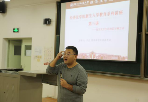 在讲座之初,王文直接点明“学习是大学的重点”,要求同学们合理安排时间,规划好自己大学四年的学习生活。同时强调辅导员在学生大学的学习生活起着至关重要的作用,辅导员和学生都是在为学生的学习和发展这一共同目标而努力。在就业升学方面,王文老师建议同学们提前准备、了解,做到满意的就业升学是一个复杂而持久的过程,学生应该认真对待、提早规划。
