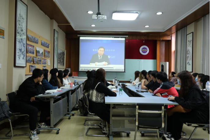 资料室为本科生、研究生开设两个分会场,组织学生收看了“习近平法治思想大讲堂”第2期直播活动。