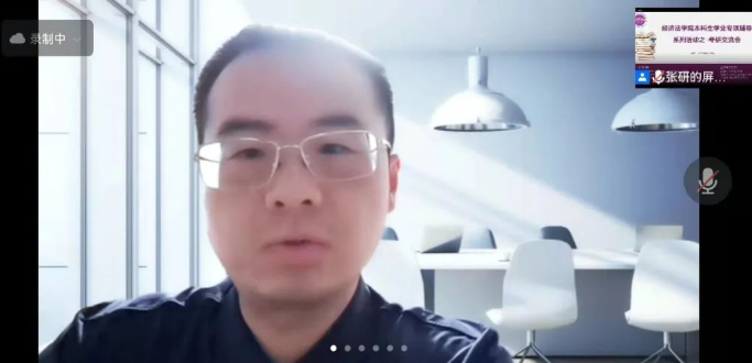 会议由2019级辅导员吕悦老师担任主持人,英超联赛88直播 副院长薛亮副教授、经济法专业硕士研究生导师杨为乔副教授、劳动与社会保障法专业硕士研究生导师陈静媛副教授与知识产权法专业硕士研究生鲁甜博士在线辅导。会议同时邀请了三位考研上岸同学进行经验分享。2019级近百位本科生参加了本次会议。