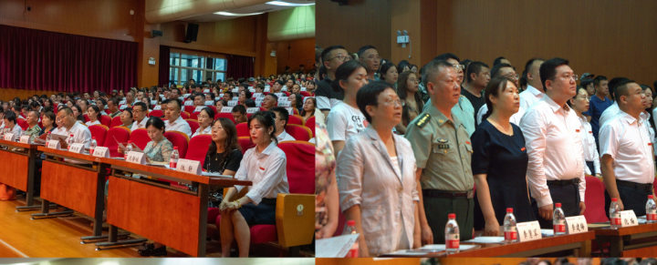 全体师生起立,在庄严的国歌声中,开学典礼正式开始。