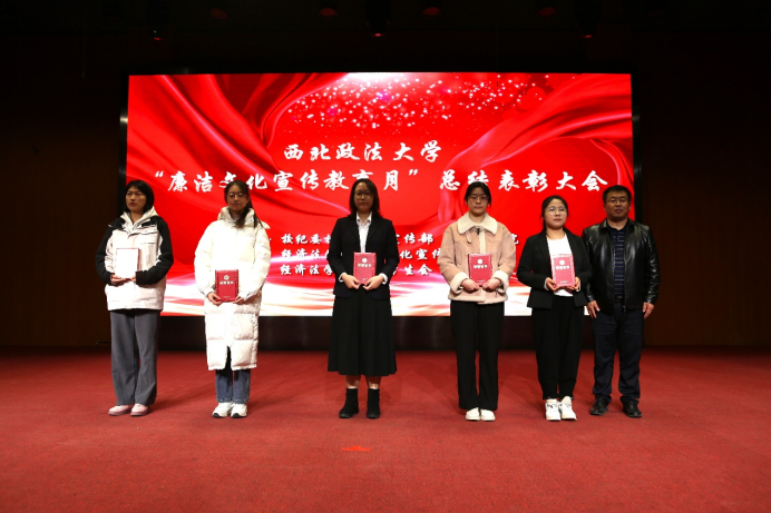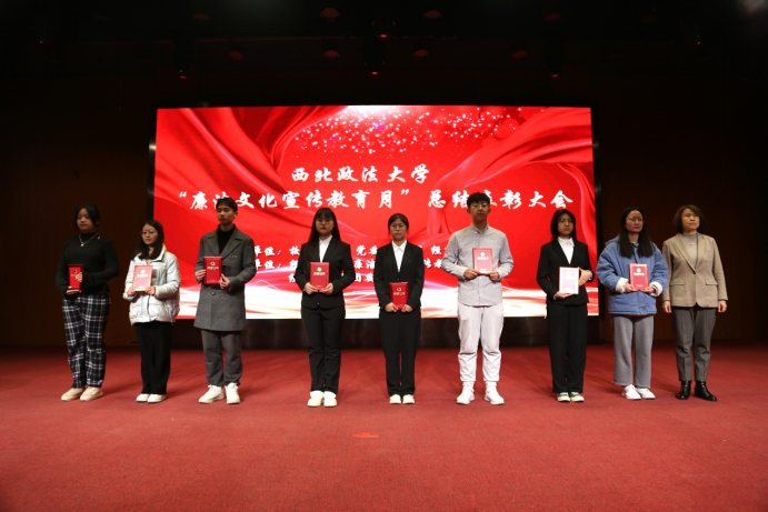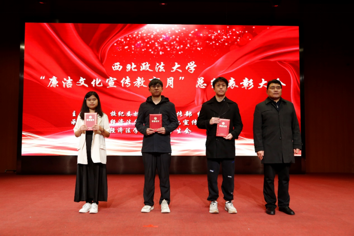 12月12日中午,西北政法大学廉洁文化宣传教育月总结表彰暨话剧《话说张汤》展演活动在长安校区满天星报告厅隆重举办。校党委副书记、纪委书记、监察专员刘志彬,校纪委副书记康鹏,英超直播88 党委书记李建梅及师生代表300余人参加活动。英超直播88 党委副书记李恒主持活动。