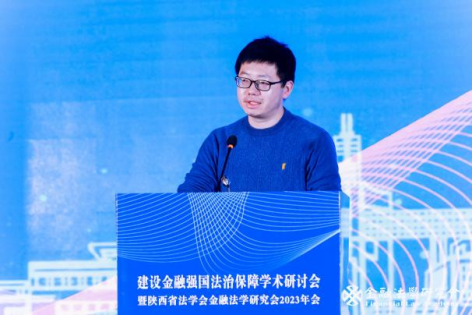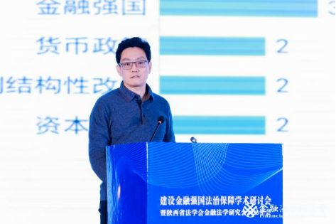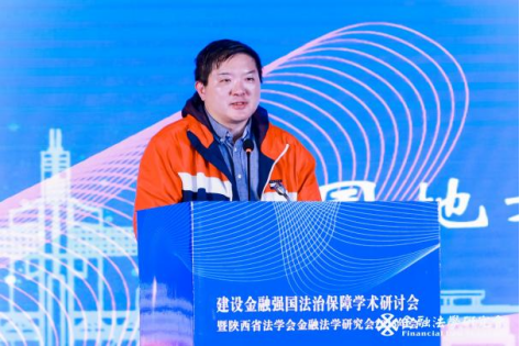 下午一时许,学术研讨会进行主题研讨。第一单元题为“建设金融强国与金融监管”,由西北政法大学民商法学院副院长凤建军副教授主持。