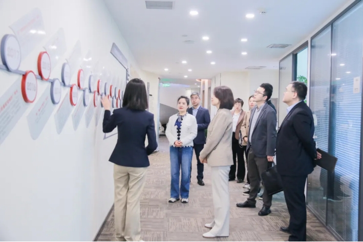 在丰瑞文化讲师的引领下,李建梅书记一行参观了丰瑞律师事务所的办公环境,对丰瑞所从“党、政、工、青、妇联、统战”等方面进行了全面的了解。