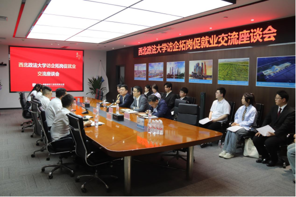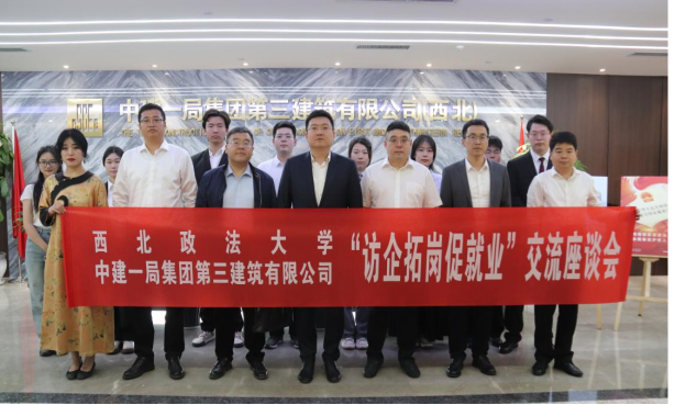 在中建一局三公司西北分公司党总支专职副书记宋志勇,副总经理赵栋,副总经理、总经济师、总法律顾问兼首席合规官霍雷等领导的介绍下,学院师生深入了解企业的创立和发展、业务板块以及人员培养模式。宋志勇强调,中建一局三公司始终重视校企合作,积极推动政产学研深度融合,愿意在课题攻关、疑难案件会商、人才培养等方面加强与学院的合作,服务公司高质量发展。