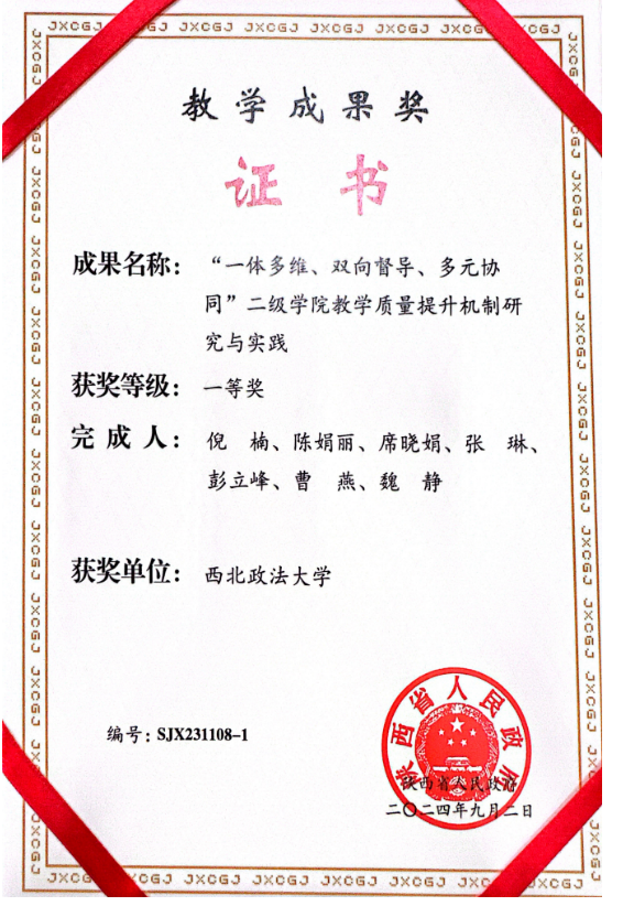近日,陕西省人民政府发布《陕西省人民政府办公厅关于表彰2023年高等教育教学成果奖获奖项目的通报》,陕西省教育厅 陕西省人力资源和社会保障厅发布《关于公布陕西省基础教育、中等职业教育教学成果奖评审结果的通知》,英超直播88 (知识产权学院)2项成果荣获2023年度陕西省教育教学成果奖一等奖。