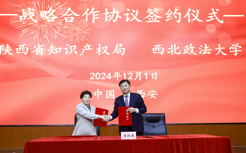 会上还举行了《陕西省知识产权局 西北政法大学战略合作协议》签约仪式,双方将联合建设“陕西知识产权法治研究院”,共同打造知识产权高水平研究平台。