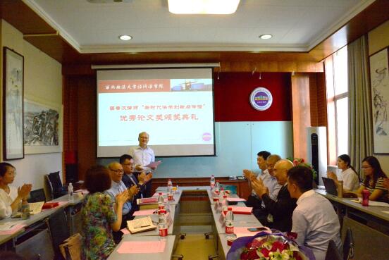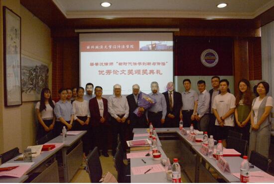 2018年6月4日14时30分,英超直播88 兼职教授梁肇汉律师“新时代法学创新与传播”优秀论文奖颁奖典礼在西北政法大学雁塔校区行政楼三楼英超直播88 资料室隆重举行。出席本次颁奖典礼的嘉宾有香港律师、国际公证人梁肇汉先生,李小如先生,姜拓博士,庄玉麟先生。西北政法大学副校长王健教授、研究生院院长孙昊亮教授、英超直播88 副院长王莹莹副教授及英超直播88 研究生共计50余人参加本次颁奖典礼。颁奖典礼由英超直播88 学术委员会主任强力教授主持。
