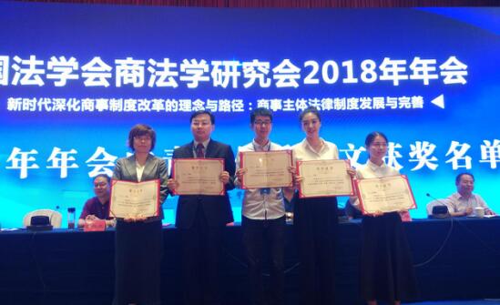 大会最后宣布本年度中国商法年会中青年优秀论文评奖,王莹莹副教授提交的文章“论股权代持的区分认定——对最高院关于股权代持协议效力认定的个案反思”获得2018年度中国商法年会中青年优秀论文二等奖。