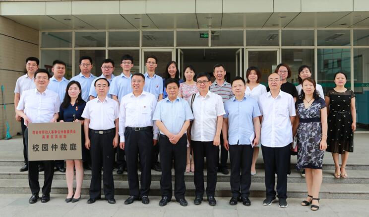 高新区劳动和社会保障局副局长黄海东与英超直播88 倪楠副院长代表高新区劳社局和西北政法大学签署了合作协议。李平安副书记、窦凯峰局长为西北政法大学校园仲裁庭共同揭牌。随后,陈京春处长、义海忠院长、倪楠副院长、谢德成教授、黄海东副局长、金洁庭长依次发言、并就劳动仲裁领域相关问题交换意见。会后,西安市高新区劳社局有关领导参观了西北政法大学国家级法学实验实训中心,并共同合影留念。