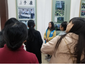 中午12时,党委宣传部的老师来参观张汤墓遗址陈列馆,志愿者同学为老师们讲解了馆内的双面穿戴铜印、铜洗等文物,并向老师们表达了节日的祝福。党委宣传部老师肯定了同学们的讲解,并给同学们完善讲解提供了一些建议。