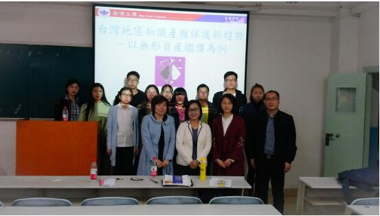 2018年10月17日晚19:30分,长安经济法学论坛一百六十六期在西北政法大学长安校区天平楼A座a203如期举行。本次论坛特邀我国台湾地区铭传大学知识产权学者陈蕙君博士做《台湾地区知识产权保护新趋势——以无形资产鉴价为例》的主题讲座。出席本次讲座的有英超直播88 副院长王莹莹副教授、英超直播88 教师杜小卫博士、英超直播88 教师鲁甜博士。我校英超直播88 本科生共计50余人参加本次论坛。论坛由王莹莹副教授主持,杜小卫博士、鲁甜博士担任与谈人。