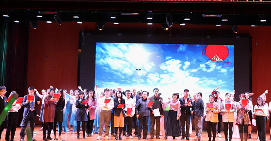 经过现场观众的网络投票,《话说张汤》、《奇妙的旅行》获得本次晚会的最佳人气奖,合唱《相亲相爱》《我和我的祖国》、舞蹈《欢天喜地》获最佳组织奖,张军政副校长为获奖节目颁奖。