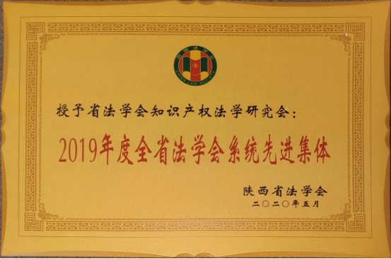 2020年8月17日上午,陕西省法学会第六届常务理事会第三次会议召开,会议宣读了表彰2019年度全省法学会系统先进集体、先进个人和首届“陕西省法学优秀成果奖”获得者的决定,陕西省法学会知识产权法学会继2018年度之后再次获评“2019年度全省法学会系统先进集体”。