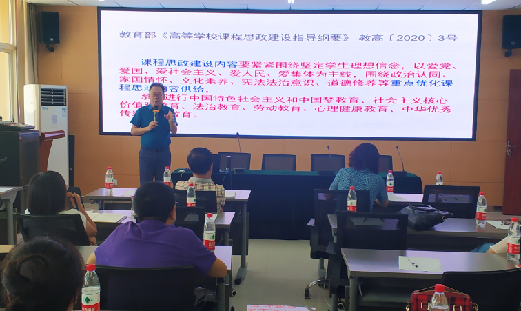 会议集中学习了国务院办公厅《关于深化新时代学校思想政治理论课改革创新的若干意见》、教育部《高等学校课程思政建设指导纲要》以及习近平总书记关于教育的重要论述。同时邀请了我校马克思主义学院院长魏奇教授做专题讲座。魏奇教授以《课堂思政,教学艺术》为题,通过“为何重视课程思政、思政元素挖掘、四好老师和教学艺术”四个方面,从理论到实践为教师们讲解了如何在法学课堂挖掘思政元素,如何通过思政进课堂帮助、引导和引领学生树立正确的人生观、价值观与世界观。