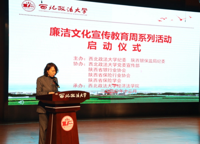 田宝在致辞中表示,开展送金融知识、送廉洁文化进校园活动,有助于大学生筑牢做人做事的根基,扣好人生第一粒扣子,使大学生真正成为实现中国梦的栋梁之才。西北政法大学是我省省属高水平大学,长期以来,发扬“政治坚定、实事求是、勇于创新、艰苦奋斗”的老延大优良传统,以“法治信仰、中国立场、国际视野、平民情怀”的育人理念,每年向金融系统输送大量优秀毕业生,为银行业保险业可持续发展提供了坚强人才支撑,为陕西金融规范化法治化进程做出了巨大贡献。