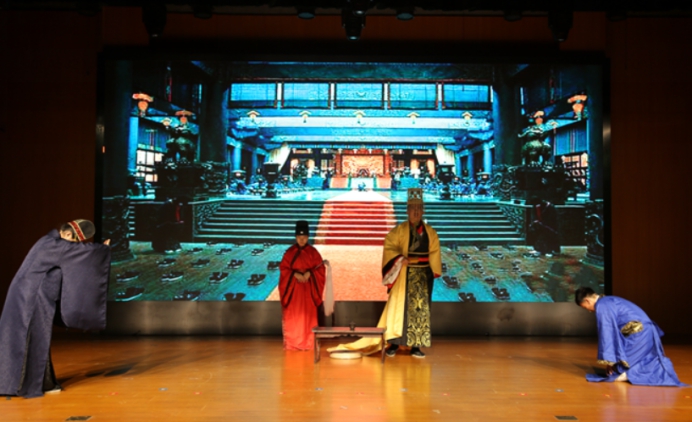 廉洁文化宣传教育中心话剧队自编自导的话剧《话说张汤》。该剧以“张汤”这一历史廉洁文化人物为代表,诠释了“为人正,为政勤,为官廉,为民实”的廉洁形象。