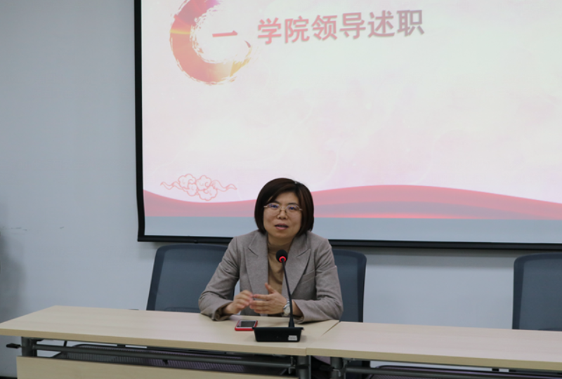 在学院领导班子述职环节,党委书记李建梅从推进习近平新时代中国特色社会主义思想“三进”工作;推进党建和教育教学工作深度融合;以创建省级标杆党委为抓手,加强党组织标准化建设;落实意识形态工作责任制与加强思想政治教育工作;学科发展和人才队伍建设;学院疫情防控和志愿服务工作等方面进行述职。