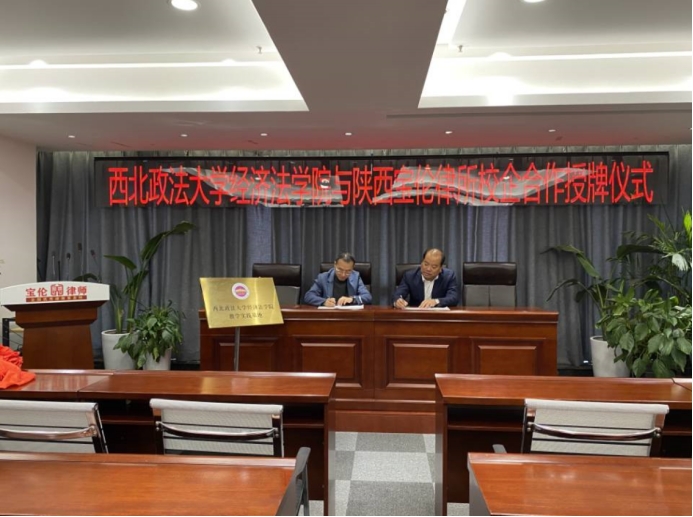 在签约环节,白银涛律师与薛亮副院长分别代表双方在合作协议上签字,薛亮副院长现场为宝伦所授牌。双方就合作建设交换了意见,并在会议讨论的基础上达成了深度合作共识,表示今后将努力拓展双方合作发展空间,将校企合作不断做深做实。