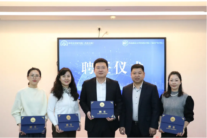 授牌仪式后,双方开展交流座谈,院长倪楠教授、朱彦副教授、鲁甜博士、张妤婕博士,与海埠西安律师事务所主任曹晓东、执行主任曹钊国、行政主任段建雄、兰景龙律师、冯智慧律师、李雪雅律师、海埠西北运营中心运营总监魏铮参加出席,行政主任段建雄主持座谈。