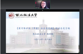 2022年1月15日上午,由英超联赛88直播 和《法律科学》编辑部以腾讯会议的形式共同主办了《黄河保护法(草案)征求意见稿》 研讨会。由《法律科学》学报编辑肖新喜主持,河南财经政法大学民商英超直播88 院长、教授陈晓景,陕西省人大法工委三处处长王雅丽,西北政法大学教授韩利琳,王继恒副教授,郝少英副教授,丁岩林副教授,陈娟丽副教授,全体西北政法大学环境与资源保护法学研究生、部分本科生约70余人参与了本次研讨会。