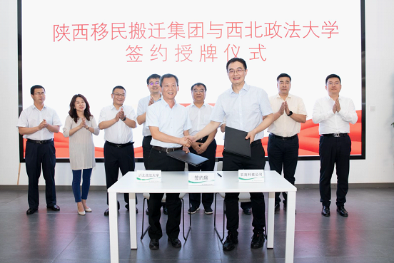 (知识产权学院)、新闻学院签订了院校合作协议。陕西移民搬迁集团与西北政法大学双方领导分别为西北政法大学就业实习基地、科研教学实践基地揭牌。