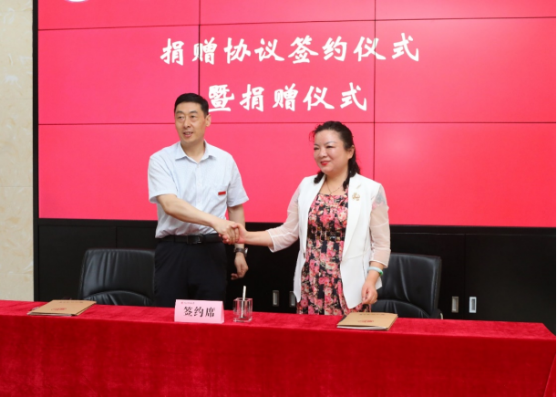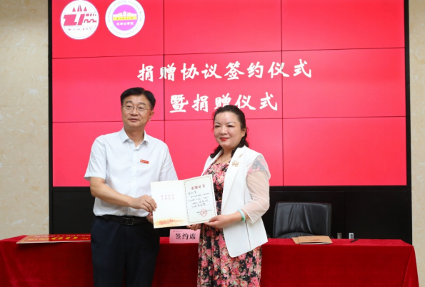 孙昊亮与雷西萍签署了捐赠协议,范九利代表学校接受捐赠,并向雷西萍颁发了捐赠证书。