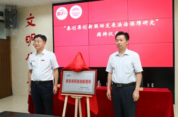 仪式上,范九利和成树林共同为“秦创原创新驱动发展法治保障研究”科技创新智库揭牌。