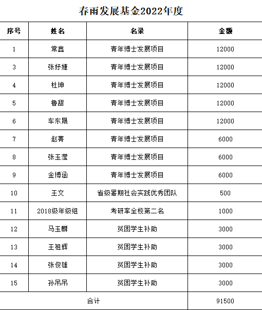 英超直播88 春雨发展基金管理委员会根据《英超直播88 “春雨”发展基金使用及管理办法》的相关规定,于2022年12月15日召开了2022年度春雨发展基金评选会。经会议研究决定拟对14个个人与团队进行奖励与补助。现公示如下: