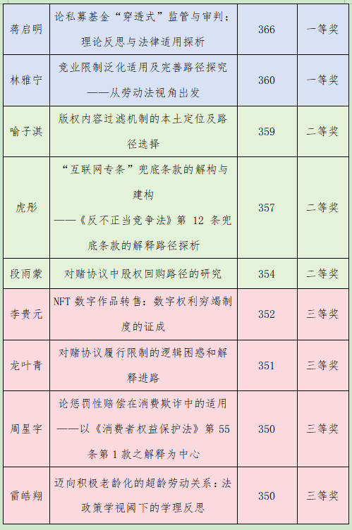 (知识产权学院)《第六届“梁肇汉”杯优秀论文奖学金“优秀论文奖”征文》的规则,现将第六届“梁肇汉”杯优秀论文奖学金“优秀论文奖”征文获奖名单进行公示,公示期为2024年6月1日至6月10日。