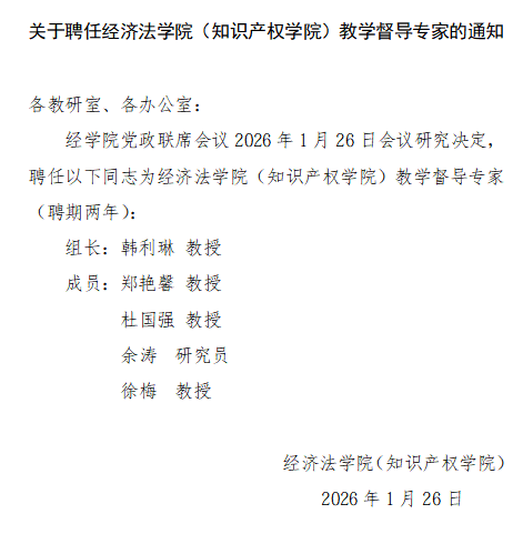 关于聘任英超直播88 (知识产权学院)教学督导专家的通知