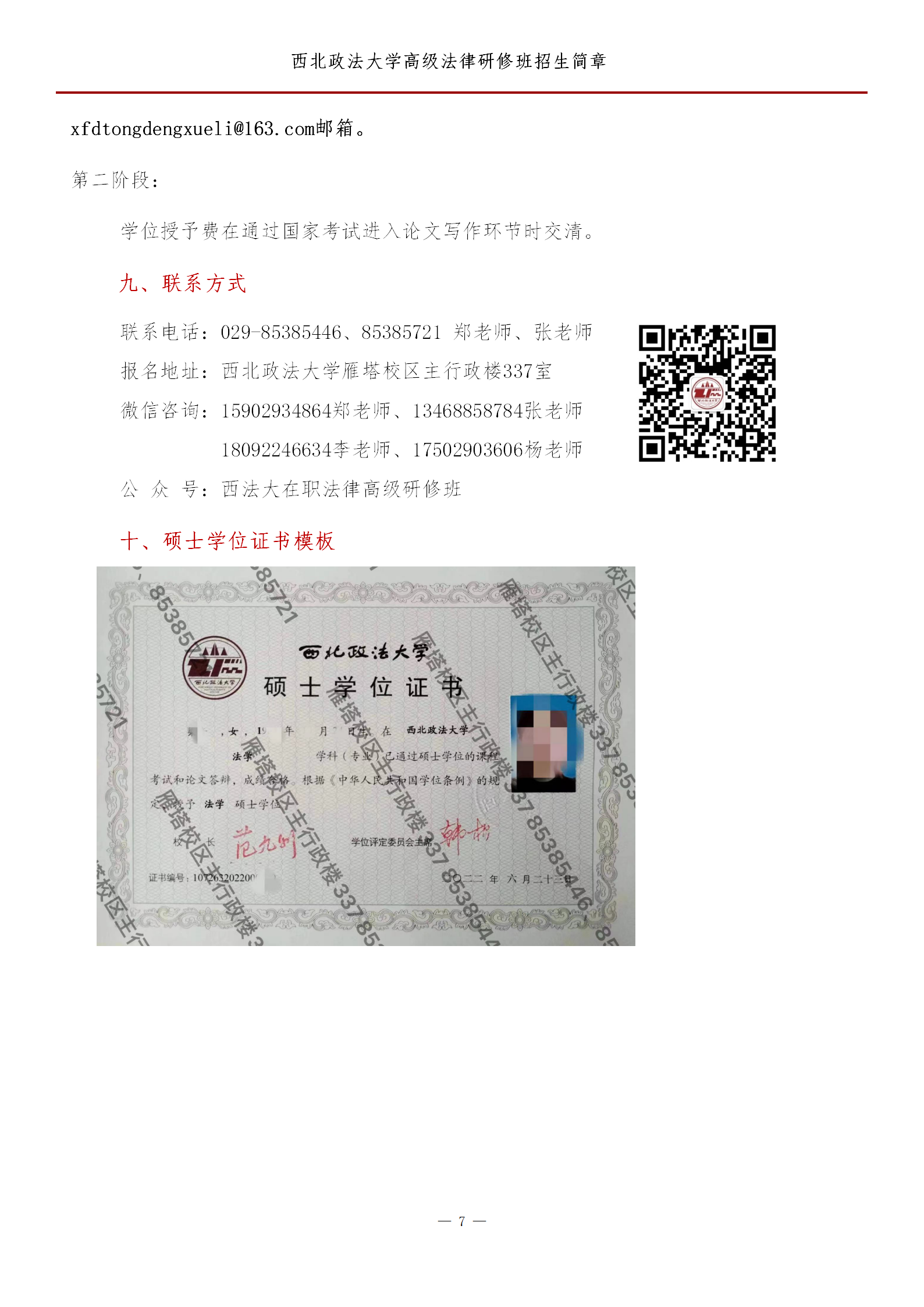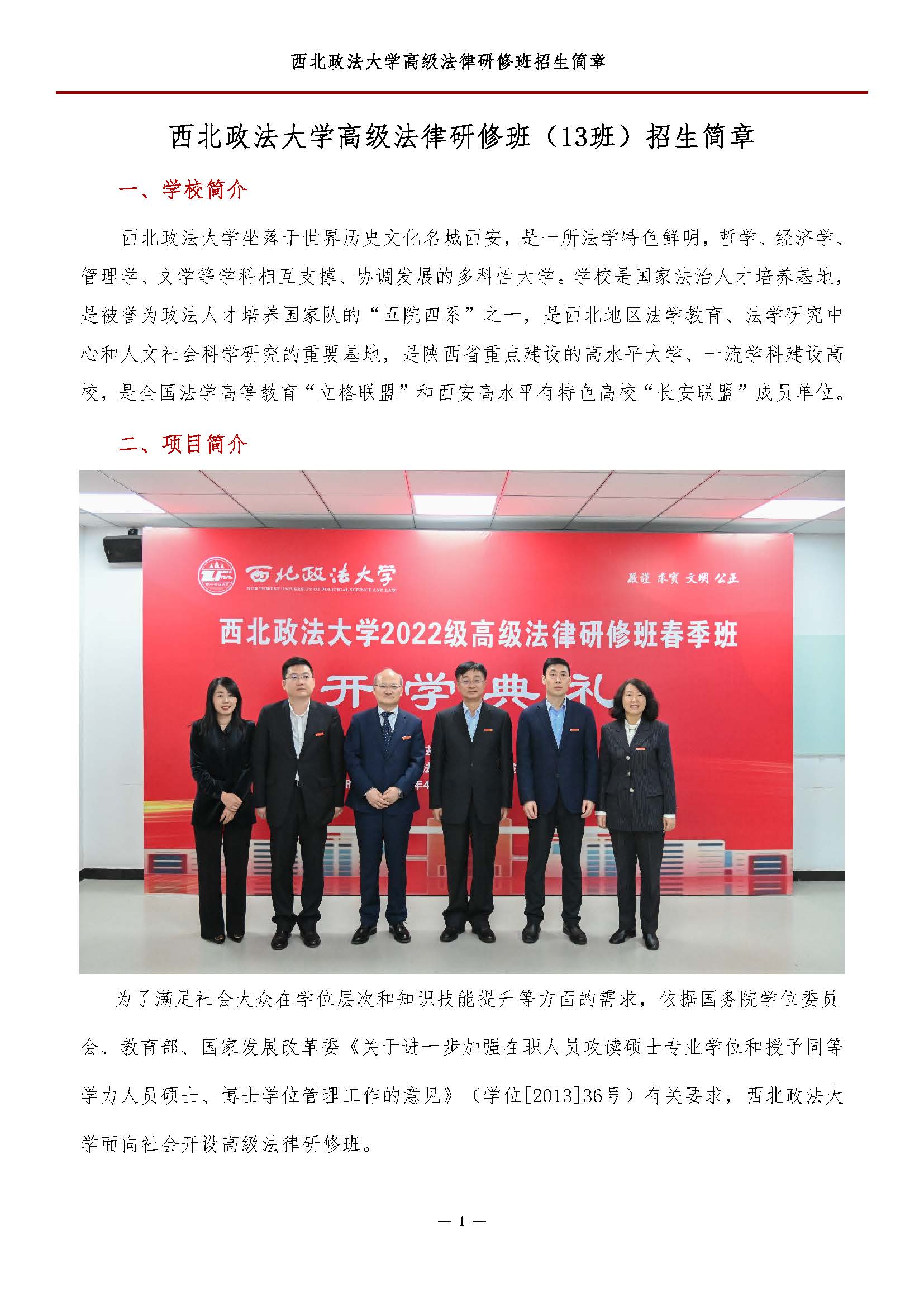 西北政法大学高级法律研修招生简章(13班)