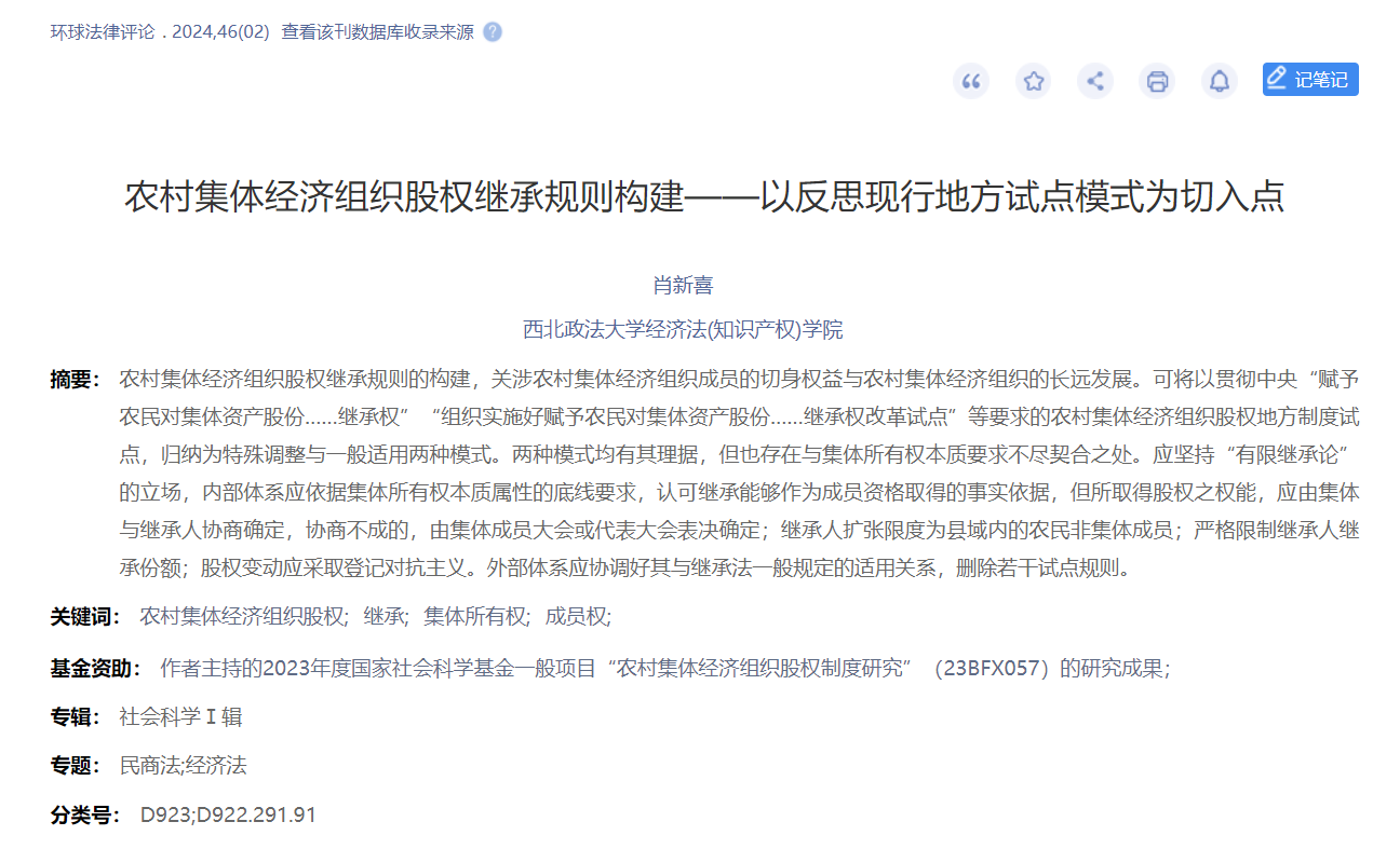 农村集体经济组织股权继承规...思现行地方试点模式为切入点_肖新喜.pdf